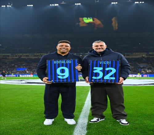 這兩個(gè)人就是曾經(jīng)的國(guó)米鋒線傳奇搭檔羅納爾多和維埃里,此番二人一同回到了曾并肩作戰(zhàn)多年的圣西羅球場(chǎng),并且還獲得了俱樂部贈(zèng)送的各自的紀(jì)念球衣。