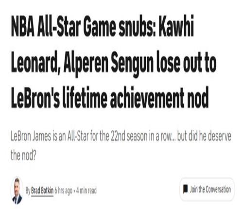 NBA專家:詹姆斯入選全明星是生涯成就獎(jiǎng)至少四人比他更配這席位