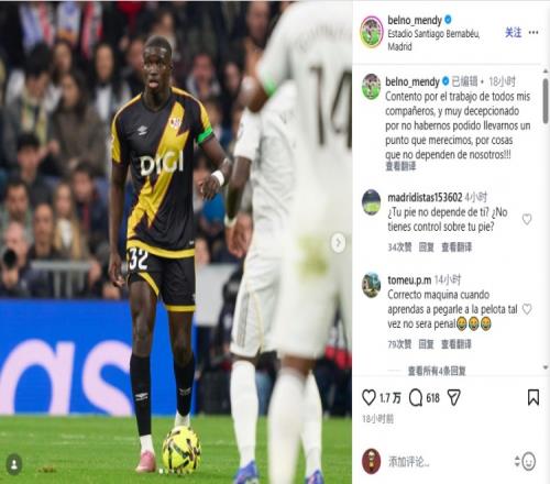 體育播報(bào)2月2日宣 昨晚,9人巴列卡諾在西甲1-2不敵皇馬,巴列卡諾球員諾貝爾·門迪在傷停補(bǔ)時(shí)第99分鐘送點(diǎn),今天,這位球員在社交媒體發(fā)文,談及此事。