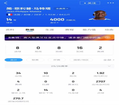 體育播報02月02日宣 據(jù)迪馬濟奧和意大利天空體育報道,馬特塔轉(zhuǎn)會AC米蘭交易告吹,球員未通過體檢。據(jù)此前報道,米蘭與水晶宮達(dá)成3200萬歐的協(xié)議。