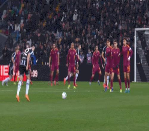 第49分鐘,??藗惪财杖我馇虼蛟诜朗仃?duì)員身上折射入網(wǎng),烏迪內(nèi)斯1-0