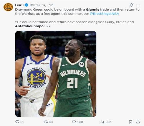 此前BrettSiegel就透露,勇士隊(duì)最多可以為字母哥送上4個(gè)首輪簽+1個(gè)首輪互換權(quán),籌碼方面德雷蒙德-格林都已經(jīng)愿意充當(dāng)揚(yáng)尼斯的籌碼,在下賽季合同到期后,勇士可以將追夢(mèng)簽回重新搭檔庫里。
