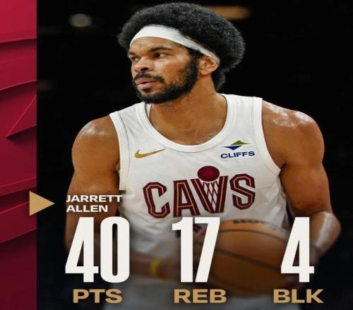 這場(chǎng)比賽,騎士中鋒賈萊特阿倫打出了驚人表現(xiàn):全場(chǎng)只打了29分30秒,投籃23中16,罰球12中8,拿下40分17籃板5籃板4蓋帽2搶斷,沒(méi)有一次失誤,正負(fù)值高達(dá)+25。