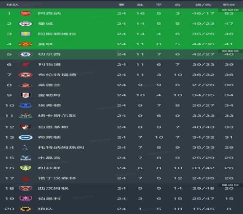英超第24輪結(jié)束了所有比賽,最新積分榜如下!