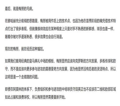 在這個(gè)思路下,梅努就應(yīng)該多練傳球,多練接球之前的移動(dòng),練防守中的選位和補(bǔ)防的意識(shí),而不是練帶球、突破,甚至是射門(mén),這是明顯練錯(cuò)了東西,搞錯(cuò)了發(fā)展方向。