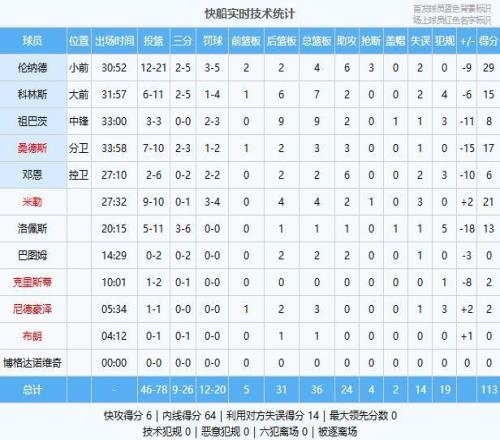 快船:倫納德29分4板6助3斷、米勒21分4板2助、桑德斯17分3板3助、科林斯15分7板2助、洛佩斯13分1板1助、祖巴茨8分9板2助、鄧恩6分2板6助、尼德豪澤2分3板