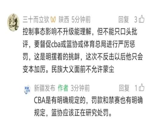 雖然隨后趙睿也進(jìn)行了道歉,不過很多球迷認(rèn)為,這件事不是只道歉就能夠過去的,趙睿應(yīng)該被重罰。對(duì)此《新疆發(fā)布》也進(jìn)行了回應(yīng),表示“籃協(xié)應(yīng)該正在研究處罰”。也就是說,因?yàn)檫@次的不當(dāng)言論,趙睿是肯定要被處罰了,而且被罰的力度恐怕會(huì)比較大。這也難怪,就連新疆自治區(qū)新聞辦公室都親自下場(chǎng)表明態(tài)度了,籃協(xié)方面再?zèng)]有處罰措施就說不過去了。