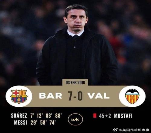10年前的今天,加里·內(nèi)維爾執(zhí)教的瓦倫西亞在國(guó)王杯0-7慘遭巴薩血洗,殘酷的比分搭配嚴(yán)肅的表情成為足壇經(jīng)典……