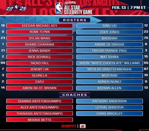 體育播報(bào)2月4日宣 NBA官方公布了2026洛杉磯全明星名人賽的比賽名單。其中包括藝人王鶴棣、還有退役球星林書豪、以及知名記者Shams等人。