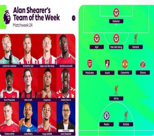 阿蘭-希勒評(píng)英超第24輪最佳陣容: