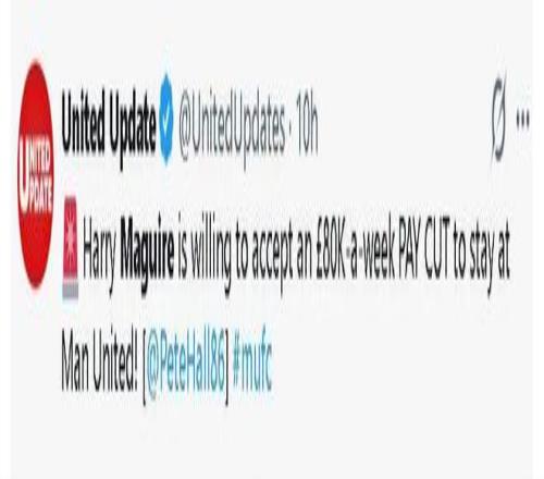 但據(jù)其報道,如果馬奎爾愿意接受大幅降薪,每周少拿約8萬英鎊,并同意俱樂部新約的其他條件,就仍有可能留在球隊。在報道中,英媒所說的是:if the England international is willing to take a substantial pay cut of about £80,000 a week,而社媒忽略了「if」的假設(shè)前提,并且將每周降薪8萬英鎊誤解為「降薪至8萬英鎊」。