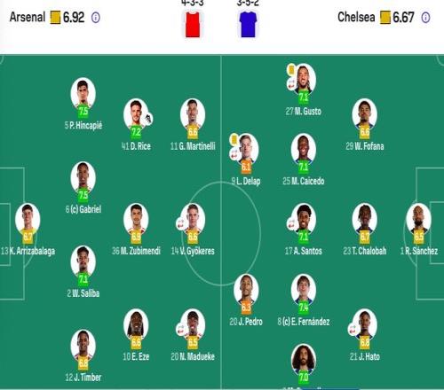 切爾西首發(fā):1-桑切斯、27-古斯托(87'34-阿奇姆彭)、29-福法納、23-查洛巴、21-哈托(61'41-埃斯特旺)、3-庫(kù)庫(kù)雷利亞、25-凱塞多、17-桑托斯(75'49-加納喬)、8-恩佐、9-德拉普(61'10-帕爾默)、20-若昂-佩德羅