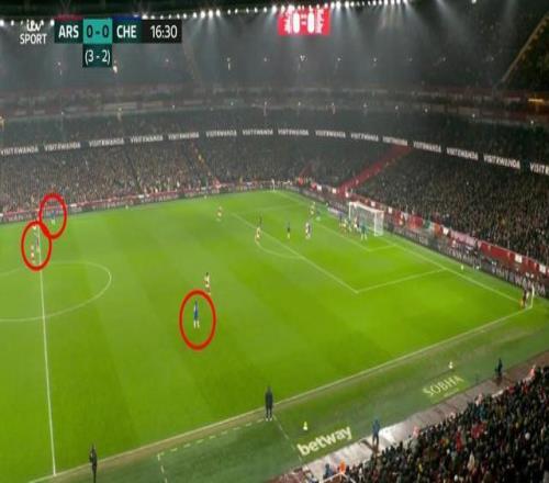 巧思,阿森納罰角球時切爾西居然安排3名球員在中圈準備反擊