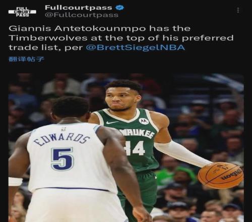 名記Siegel對(duì)此表示,字母哥把加盟森林狼&搭檔愛(ài)德華茲視為首選,有望今年交易截止日(2月6日)前就空降到明尼蘇達(dá)。