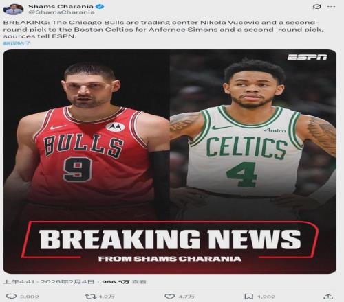 杰倫-杜倫是2022年首輪13號(hào)秀,跟艾維是同屆新秀?;钊运妥甙S,也是為了今年夏天給杜倫大合同。接下來(lái)說(shuō)說(shuō)今天第二筆交易:公牛將武切維奇和2027年次輪簽送去凱爾特人,換來(lái)安芬尼-西蒙斯和2026年次輪簽。
