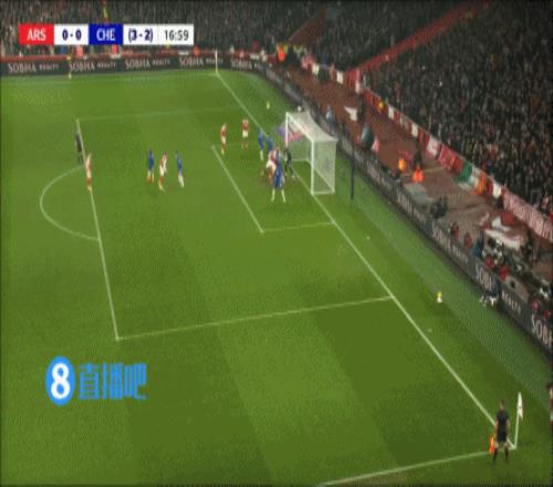 第17分鐘,阿森納右側(cè)角球,馬杜埃凱主罰開到小禁區(qū)內(nèi),因卡皮耶頭球出了底線↓