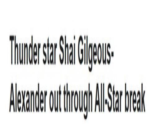 北京時間2月5日,據(jù)雷霆官方消息,俄克拉荷馬城雷霆隊后衛(wèi)亞歷山大,因在周二晚間球隊大勝魔術隊的比賽中腹部肌肉拉傷,將至少缺陣球隊接下來的五場比賽,他將在全明星周末后接受復查。