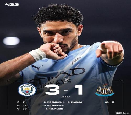 英格蘭聯(lián)賽杯半決賽次回合,曼城主場(chǎng)3-1紐卡斯?fàn)?,總比?-1晉級(jí)決賽,將對(duì)陣阿森納。馬爾穆什梅開(kāi)二度,賴因德斯破門,伊蘭加扳回一球。