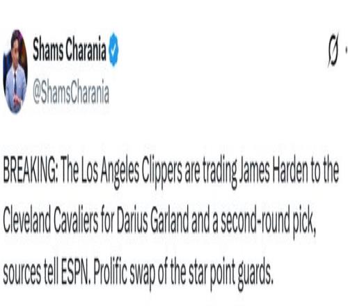 重磅交易達(dá)成!快船送出哈登從騎士換來加蘭和一個(gè)次輪簽