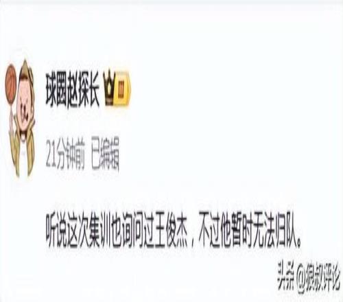 賽后,媒體人趙探長發(fā)文:聽說這次集訓也詢問過王俊杰,不過他暫時無法歸隊。