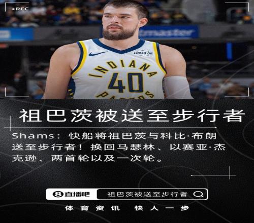 體育播報02月06日宣 名記Shams報道,祖巴茨、科比·布朗被快船交易至步行者!馬瑟林、以賽亞·杰克遜被送往快船!